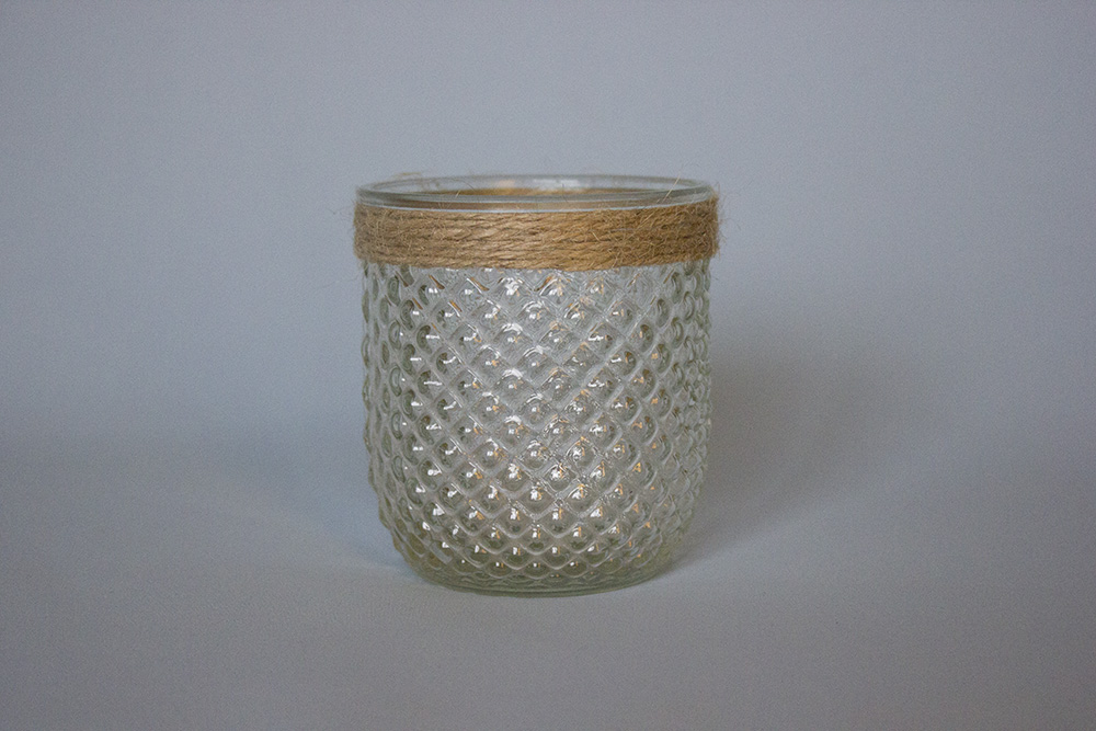 Glas Sisal 8cm Durchmesser | 9cm hoch Preis: 2,- EUR |